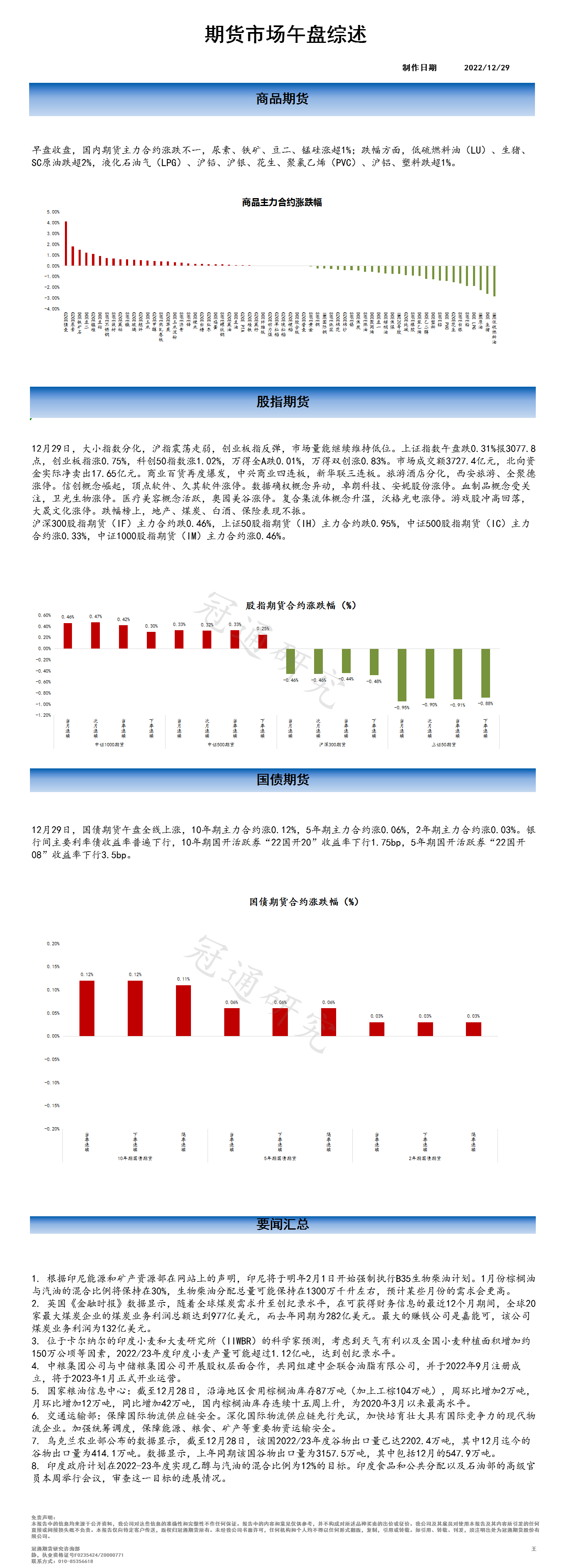2022-12-29 期货市场午盘综述