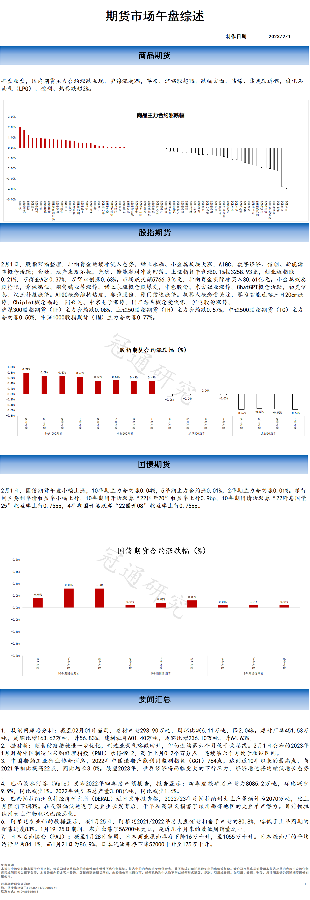 2023-02-01 期货市场午盘综述