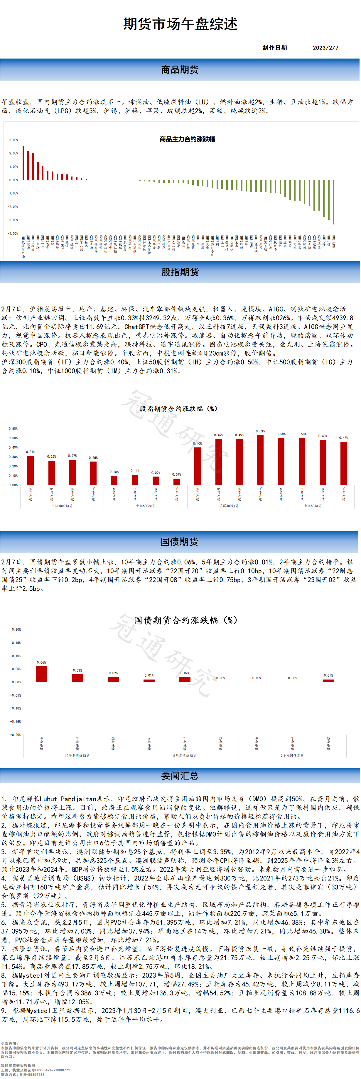 冠通研究--20230207 期货市场午盘综述