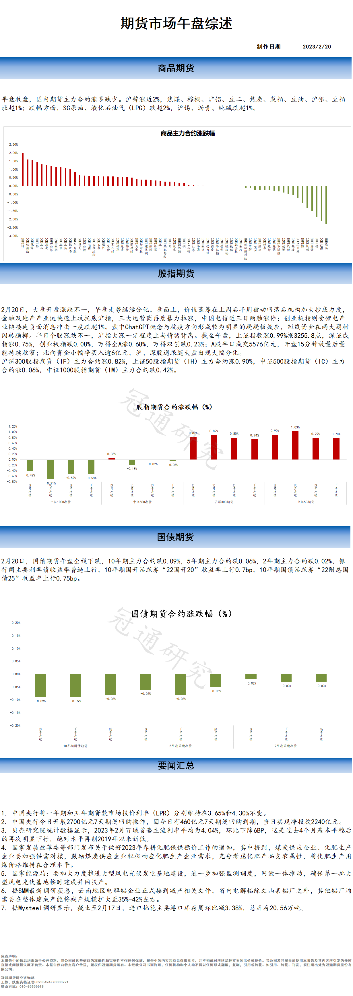 冠通研究--20230220 期货市场午盘综述