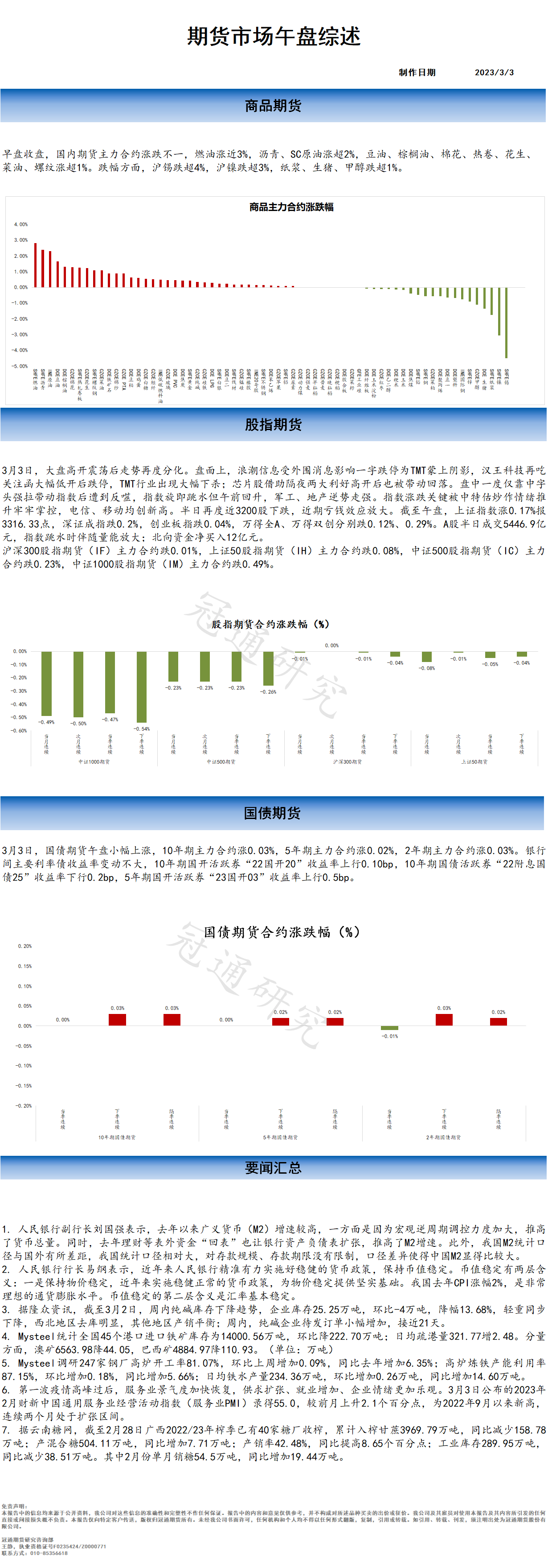 冠通研究--20230303 期货市场午盘综述