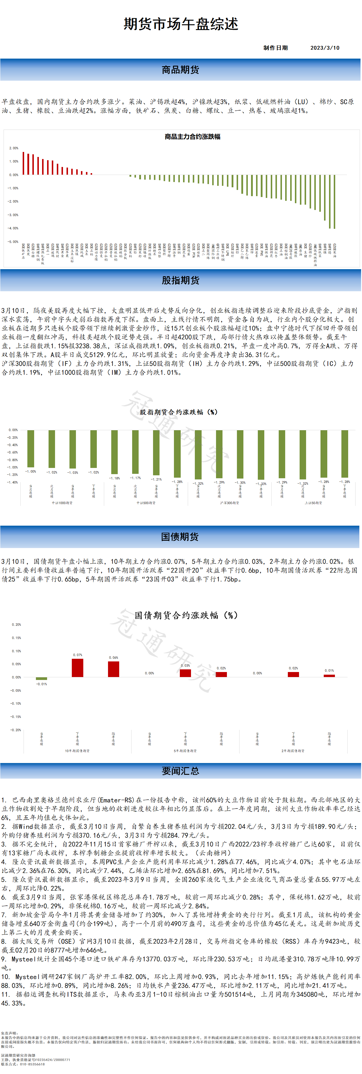 冠通研究--20230310 期货市场午盘综述