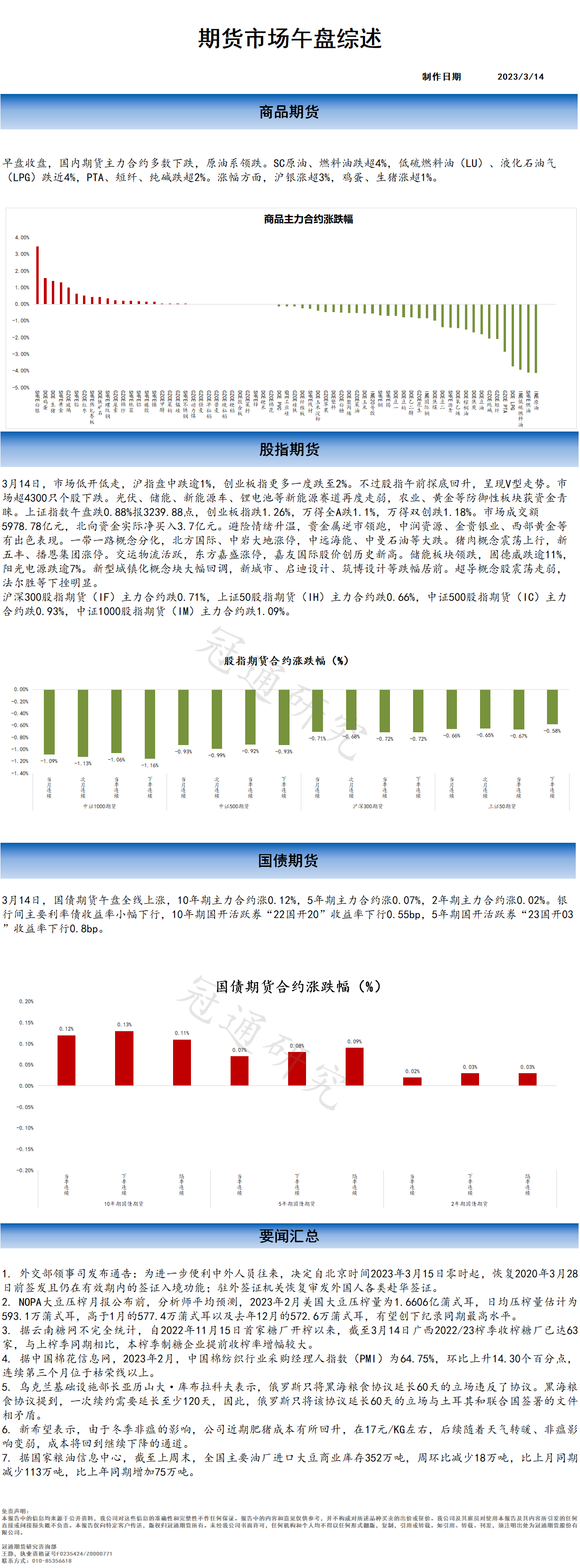 冠通研究--20230314 期货市场午盘综述