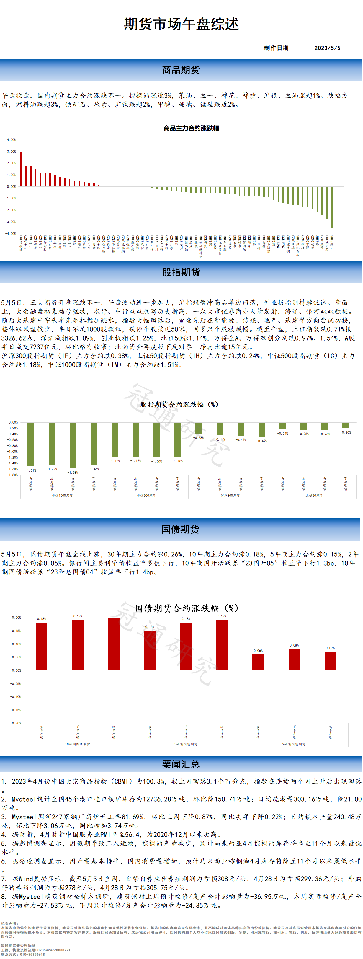 冠通研究--20230505 期货市场午盘综述