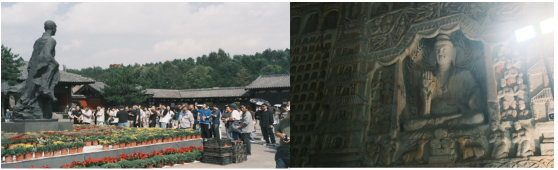 第二天上午,我们踏上了前往古城的旅程,直抵被誉为“辽金佛殿的璀璨明珠”的华严寺。漫步于古色古香的街巷之间,朱红色的山门与古朴典雅的殿宇逐一映入眼帘。殿内陈列的辽代彩塑和细腻精美的壁画,无不生动展现了古代建筑与艺术的独特魅力。团队成员们或跟随导游深入探寻殿宇背后的历史故事,或在红墙之下合影留念。阳光温柔地洒落在每个人的笑脸上,将这一刻的美好瞬间定格,成为这支团队难忘的回忆。