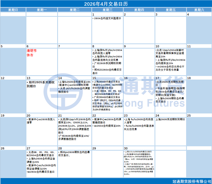 2026年4月交易日历